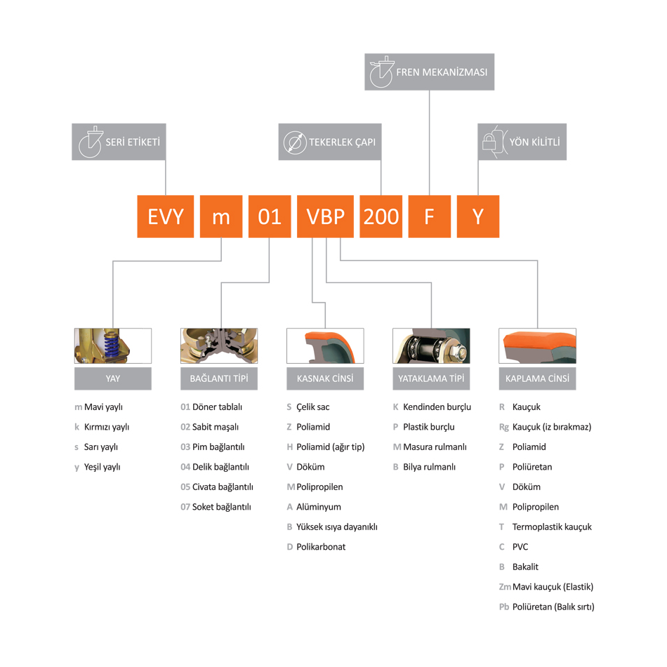 EM 01 ZKP 100X30 Döner Tablalı Burçlu Poliüretan Teker